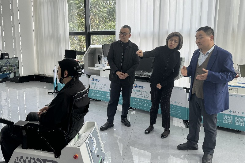 随后,调研组走进上海韶脑传感科技有限公司,参观企业研发实验室与产品展示区,听取企业关于非侵入式脑机接口技术、神经康复设备研发及产业化应用的介绍。代表们与企业负责人就技术转化、市场推广、养老场景适配等问题展开探讨,积极建言献策。